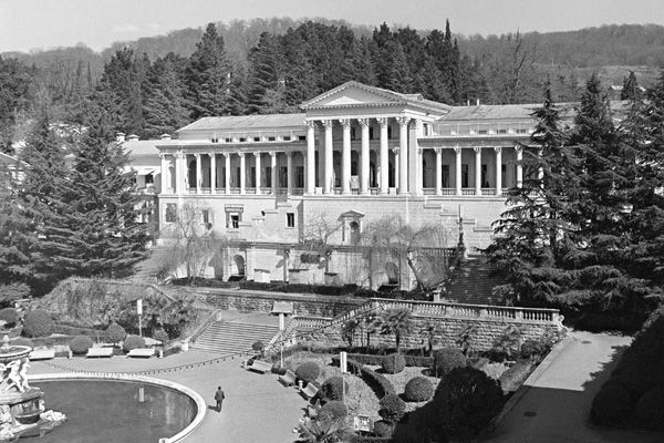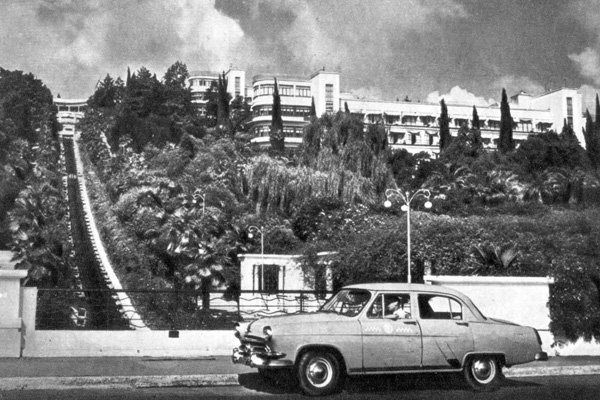 Фото: Санаторий имени Орджоникидзе в Сочи, 1969 год. ИТАР-ТАСС В старом фильме Геннадия Казанского про старика Хоттабыча постепенно перевоспитывающийся джинн прилетал, прихватив пионера Вольку и его однокашника Женю Богорада, в советский парадиз, санаторий на Черном море. Туда, где герои труда, подобно патрициям, бродили меж мраморных колоннад, шевеля полами казенных халатов, а вокруг цвел ядовитый олеандр и пел ветер.