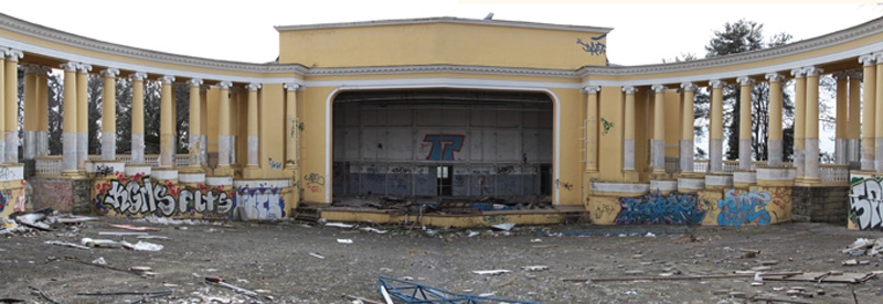 Что сейчас на этом месте: На месте санатория планировалась постройка пятизвездочного отеля и элитного жилого комплекса, однако проект заглох из-за проблем с финансированием. За огороженным забором пустырем — остатки руин, их можно увидеть, если спускаться по пешеходной тропе от подножия Бытхи к центральному стадиону.
