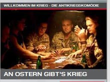 Поводом для дискуссии послужил скандал вокруг антивоенного сериала о службе немецких солдат в Афганистане "Добро пожаловать на войну". Фильм полон уничижительных и гротескных намеков, а солдаты в нем выглядят безголовыми марионетками, катающимися по пустыне на бронетранспортере в сильном подпитии и под веселенькую музыку. Время показа было приурочено к традиционным весенним антимилитаристским демонстрациям.