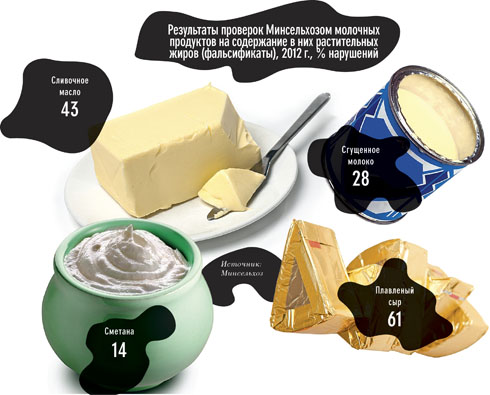По данным «Союзмолока», более 50% продаваемого в торговых сетях сливочного масла, более 30% сметаны и творога, более 70% плавленых сыров сегодня являются фальсификатом
