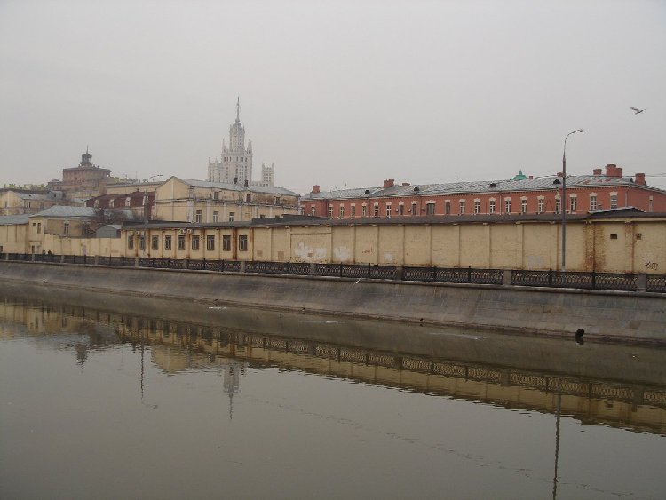 А это один из последних жилых домов на Озерковской набережной. Какая-то часть квартир уже выселена (и временно заселена азиатами), на другой части пока живут старожилы Замоскворечья. Наверняка, стоять ему тут осталось недолго, и на его месте окажется очередная вавилонская башня: