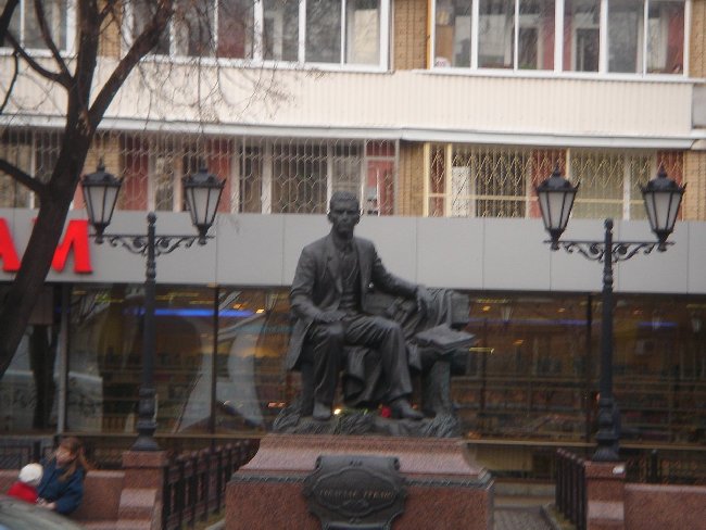 Район вообще отчётливо становится всё более мусульманским. Впрочем, он исторически был таким всегда – тут появилась ещё в 1820-х первая в Москве мечеть (Блог Толкователя показывал её), до половины жителей до Революции составляли татары (ещё треть – старообрядческие купцы). И сегодня среди коренных жителей Замоскворечья как минимум треть – татары, пусть и «обмосквовившиеся». Тут действует Татарский культурный центр, магазин национальной одежды, а недавно на деньги правительства Татарии на Новокузнецкой улице был установлен памятник их поэту Габдуле Тукаю. Вот он: