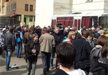 У Таганского суда в Москве задержаны около 20 человек, выступающих в поддержку арестованных участниц панк-группы Pussy Riot. В частности, задержаны участники дуэта "Аркадий Коц" - поэт и активист Кирилл Медведев и Николай Олейников, сообщает корреспондент Граней.Ру. Их задержали сразу после импровизированного выступления с песней "Стены рухнут". Полиция производила задержания без объяснения причин. Также задержан православный активист, устроивший одиночный пикет с плакатом "Толоконникову, Самуцевич и Алехину покарайте". Двое других активистов начали распылять порошковый огнетушитель, их также задержали, сообщает Газета.Ру. Всего у суда собралось около 300 человек. Произошла потасовка между активистами движения "Народный собор" и участников акции в поддержку Pussy Riot.