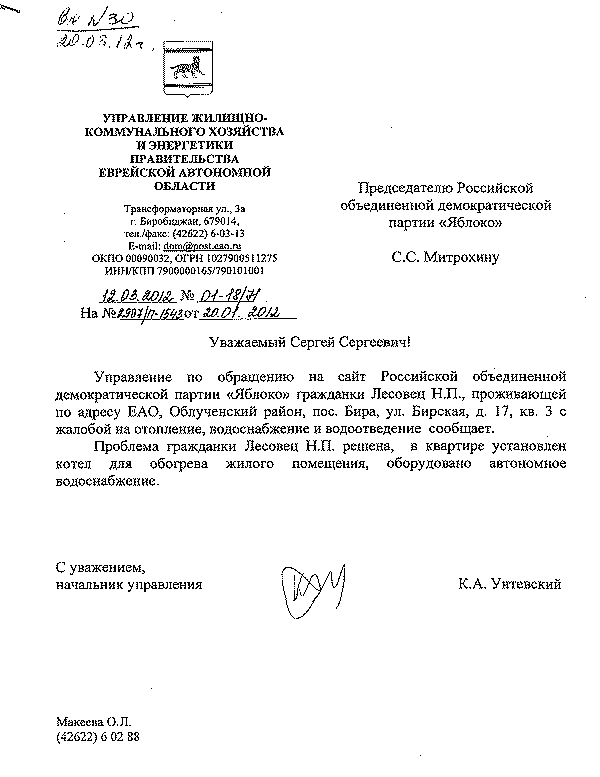 Реагируя на обращение многодетной матери, я направил к губернатору ЕАО А. Винникову обращение с просьбой решить проблему.