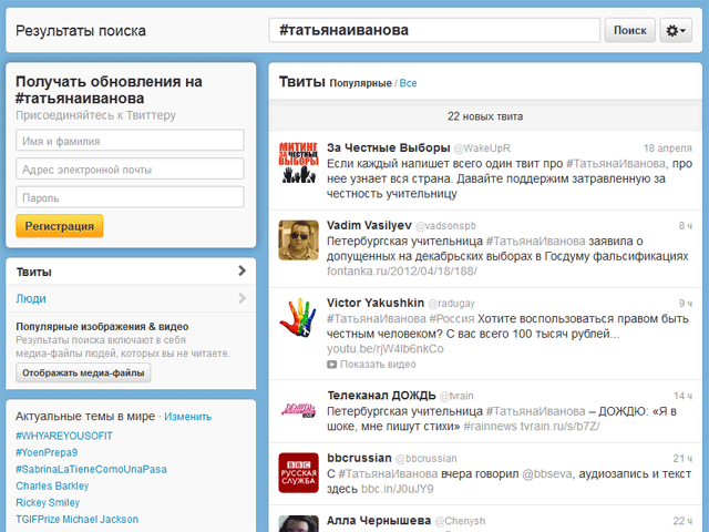 Учительница из Санкт-Петербурга Татьяна Васильевна Иванова, в начале февраля буквально взорвавшая Рунет своей исповедью о проведении парламентских выборов в ее школе, вновь оказалась в центре всеобщего внимания. Спустя два месяца интерес к происходящему с ней подстегнул судебный процесс против пенсионерки. В начале недели в Twitter появился хэштег #ТатьянаИванова, почти моментально выбившийся в лидеры не только петербургского, но и российского рейтинга социальной сети.