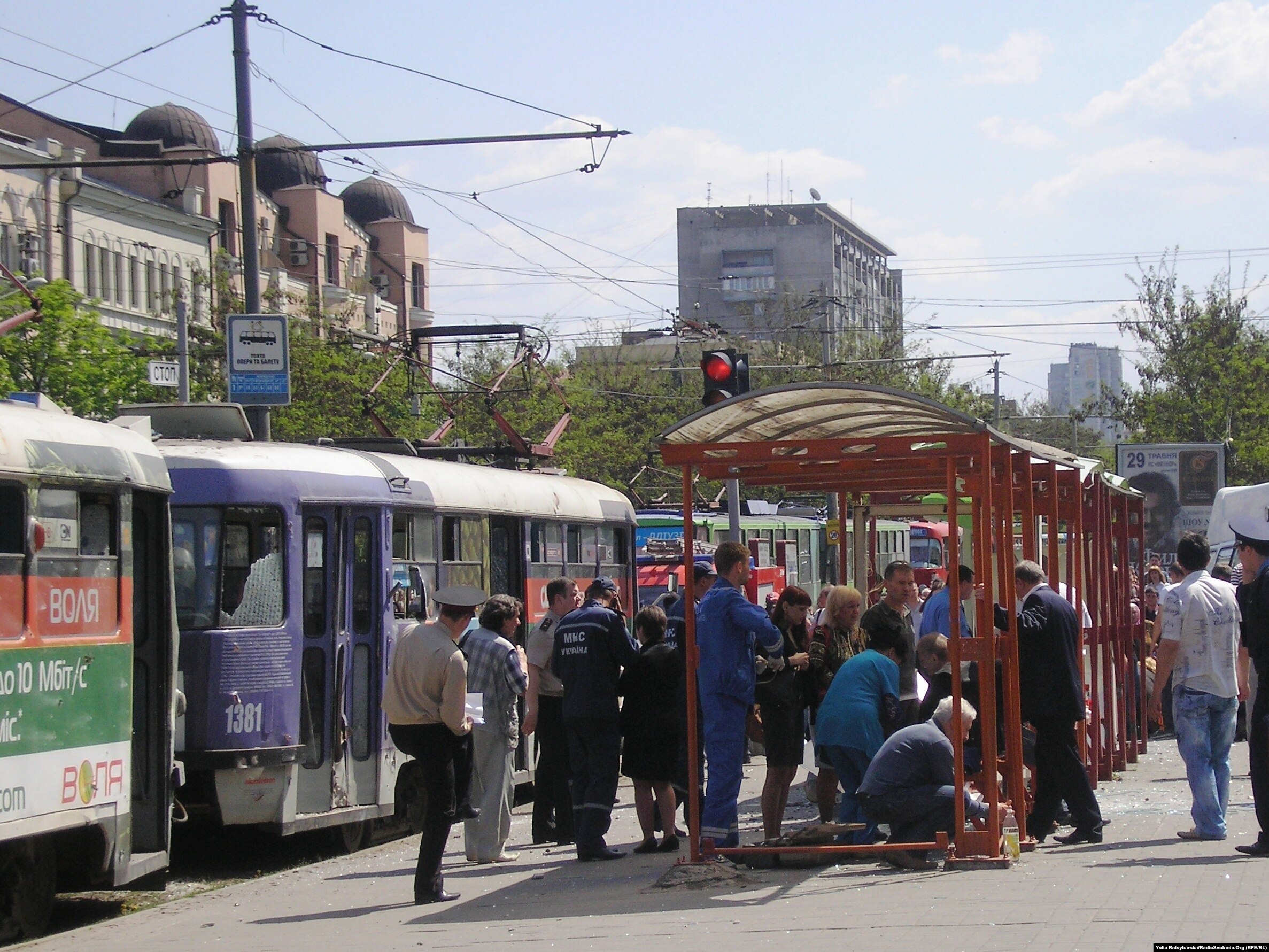 Первый взрыв прозвучал около полудня на трамвайной остановке напротив Оперного театра. Взрывное устройство было заложено либо в прибывающем трамвае, либо на остановке в урне. Ранения получили три пассажира трамвая, осколками зацепило и людей, проезжающих в этот момент мимо в автомобилях. Спустя несколько минут в центре Днепропетровска прогремели еще три взрыва: возле кинотеатра "Родина", на улице Серова и на проспекте Карла Маркса.