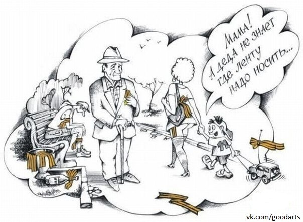 Раньше носил ленту, но вот сейчас просто нет желания. Все свое отношение к Победе и людям, которые ее ковали, буду держать в сердце и попытаюсь выразить иначе...
