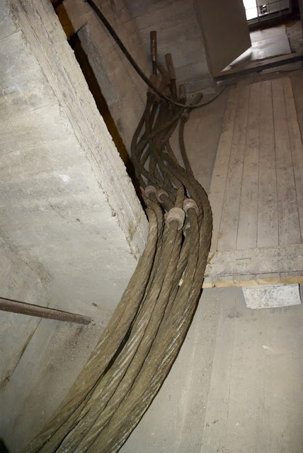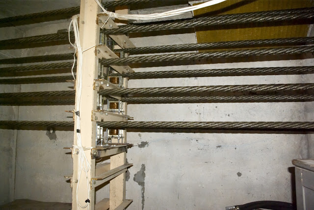 Для контроля состояния канатов на них установлено множество датчиков.