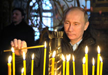 Избранный президент Владимир Путин передал Новодевичьему монастырю древнейший список Иверской иконы Божьей матери, принял участие в крестном ходе и побывал в крестильном храме святого князя Владимира, расположенном в подклети Успенской церкви обители, передает РИА "Новости". В сопровождении патриарха Московского и всея Руси Кирилла и настоятельницы монастыря игуменьи Маргариты Путин спустился в этот небольшой храм и поставил свечу у иконы князя Владимира.