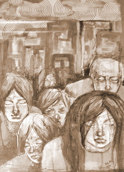 Вышедшие на «Проспект молодежи» хорошо понимают, что попали не большую дорогу и что не всё так просто. Совершенно оторваться от Земли невозможно. Действительность давит и дразнит. Отсюда и специально подобранные развешенные под картинами цитаты: «Только беда с волшебством в том, что оно почти ни в чем не помогает. Когда дела плохи, мало проку от того, что ты замечаешь эльфов на свалке и ворон, которые могут превращаться в девчонок и обратно» (Чарльз де Линт, «Волчья тень»).
