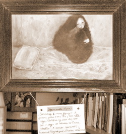 В данном случае всё произошло естественным образом, потому что выставленные картины, по сути – книжные иллюстрации. Отсюда и сопровождающие надписи – цитаты из братьев Стругацких, Рэя Брэдбери, Чарльза де Линта, Евгения Замятина…