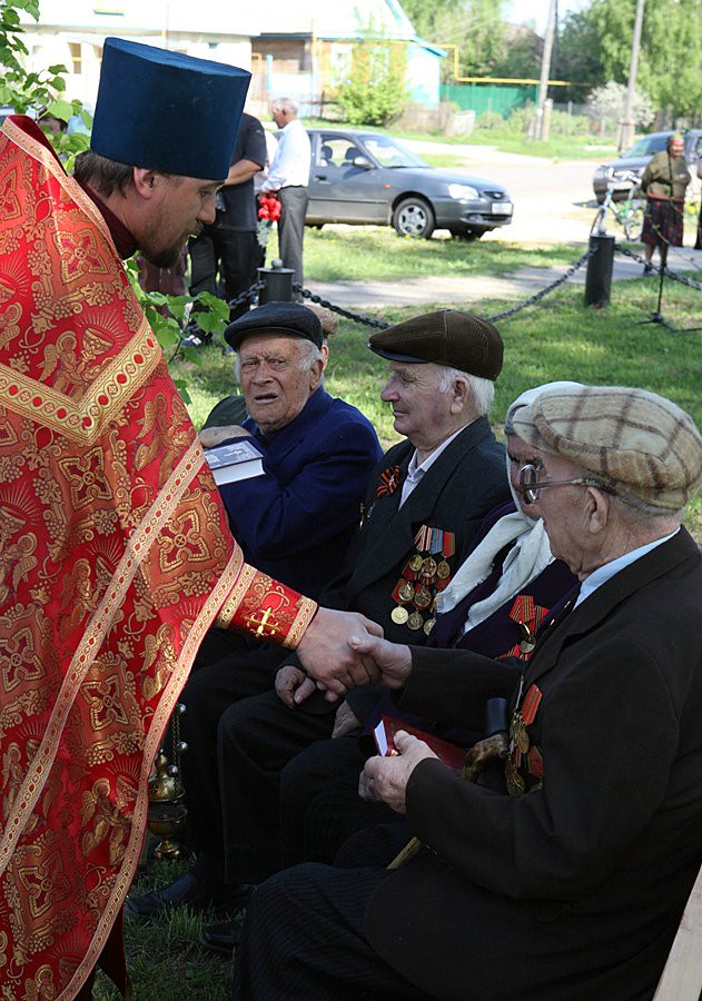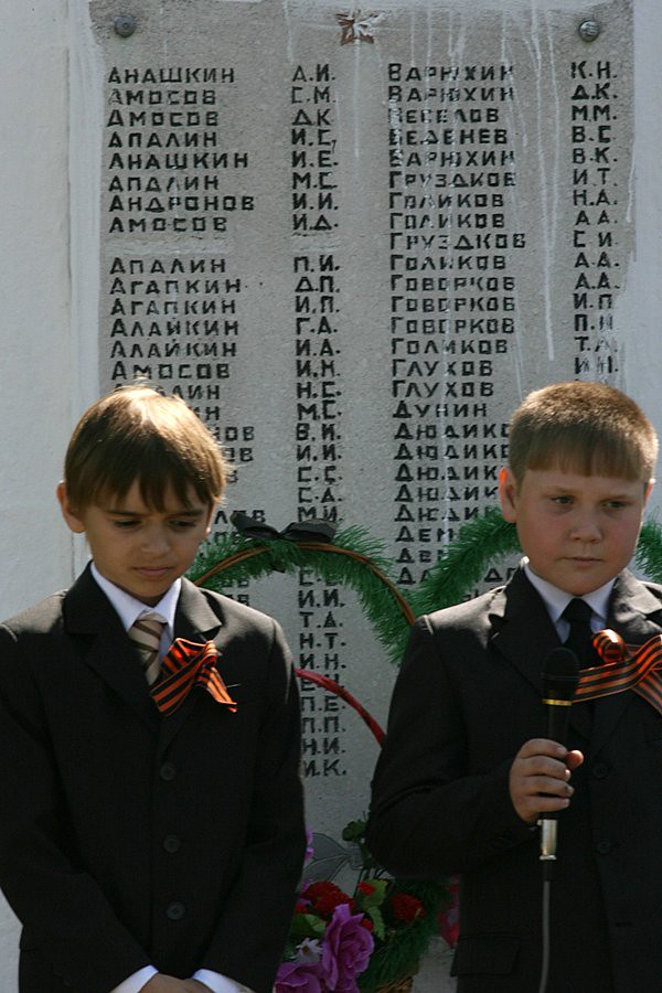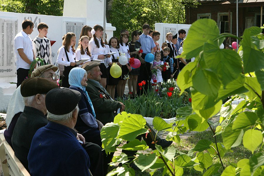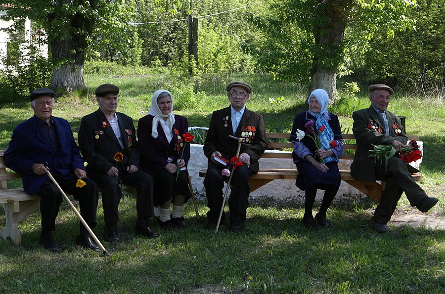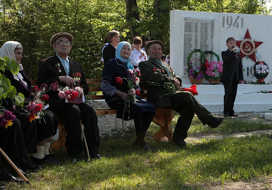 Сегодня всем селом поздравляли ветеранов с Днем Победы. Больше 600 человек ушло из рязанского села Инякино на фронт. Половина не вернулась. Сегодня к обелиску пришли всего пятеро ветеранов. Их поздравляли без столичной помпы, но от души. Крестный ход, торжественные речи, цветы, подаренные местными школьниками, небольшие подарки, концерт, скромное угощение и фронтовые сто грамм — вот то немногое, что могут дать сегодня односельчане ветеранам. Но все это от души и как-то по-домашнему. Все знают друг друга и обращаются к ветеранам по-простому: дядьколя, бабмаша...