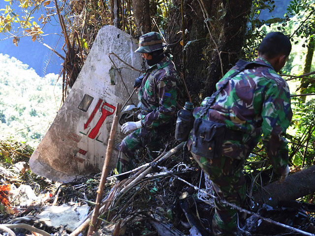 На дне ущелья работы по поиску останков погибших и самописцев ведут несколько сотен индонезийских спасателей и 41 работник МЧС РФ.