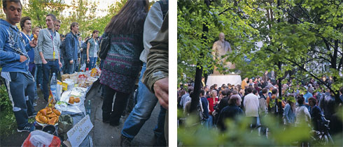 Банджо, кажется, так никто и не привез, но всего остального, где бы ни собирался «мобильный майдан», было достаточно. «Обязательно возьмите салфетки, — говорил мужчина, раздававший сэндвичи ночью на Патриарших прудах. — А если вам нужна вода, то обратитесь к вон той девушке в кепке».