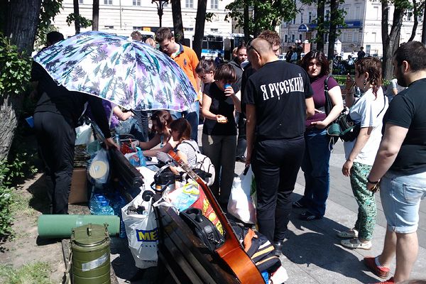 В акции участвую с самого первого дня, с 7 мая. Я здесь живу постоянно. У меня машина и прицеп. На Чистых поуютнее, ближе магазины были, но и здесь хорошо.