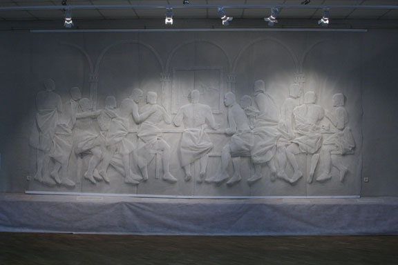 Группа RECYCLE (Андрей Блохин, Георгий Кузнецов), «Тайная вечеря», 2010. Фото: Сергей Калинин Молодые краснодарские художники, лауреаты премии Кандинского, заглянули в знаменитую фреску Леонардо да Винчи из-за спины апостолов.