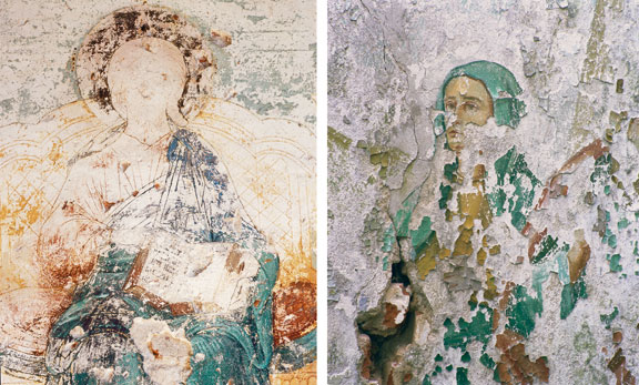 Владимир Куприянов, из серии «Среднерусская античность», 2004. Фотограф Куприянов снял старые полуразрушенные фрески. Как пишет искусствовед Роман Багдасаров, «согласно церковной практике, поновление икон становится обязательным тогда, когда перестает быть узнаваемым образ. Но исправление может снизить художественную ценность памятника. Будучи строго документальными, фотографии Куприянова отражают богословско-этический пафос, не поддающийся разрешению в рамках концепции «памятника культуры», принятой сегодня».