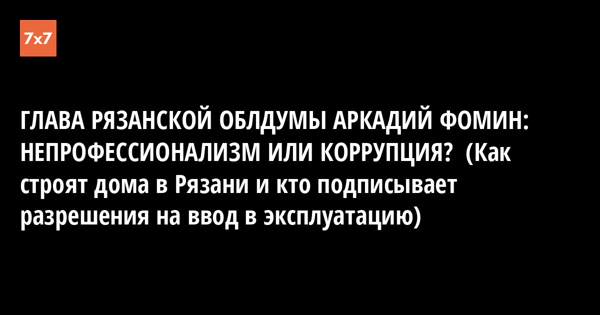 ГЛАВА РЯЗАНСКОЙ ОБЛДУМЫ АРКАДИЙ ФОМИН: НЕПРОФЕССИОНАЛИЗМ ИЛИ КОРРУПЦИЯ? (Как строят дома в Рязани и кто подписывает разрешения на ввод в эксплуатацию)