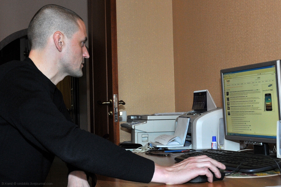За 2 часа до начала судебного процесса в Ульяновск прибыл и сам Сергей Удальцов. Оставшееся время до начала процесса провел в общении со своими соратниками по интернету: