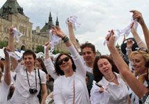 Последние "народные гуляния" на Красной площади прошли 8 апреля. Тогда несколько сот человек вышли с белыми лентами. Участники гуляний водили хоровод, пели песни "Скованные одной цепью", "Родину" Шевчука и "Ничего на свете лучше нету". Активисты украсили белыми лентами, цветами и шариками станцию метро "Площадь Революции", в том числе скульптуры.