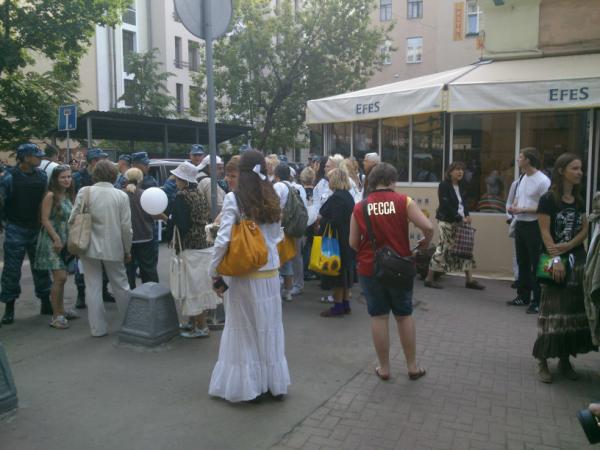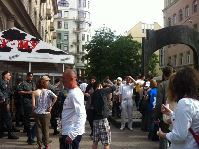 Фото: Алиса Иваницкая/Publicpost Выходные в Москве выдались жаркими. На Петровке на несанкционированный пикет вышли гей-активисты. Акция закончилась задержаниями. В Новопушкинском сквере прошел "Митинг против повышения штрафов за митинги". Сбор участников велся, как обычно, через специально созданную группу в Facebook, но акция не собрала много людей.