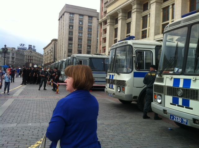16.04 "Интерфакс": Московская полиция приняла дополнительные меры безопасности у входа на Красную площадь, где в воскресенье планируется акция гражданских активистов "Белое дефиле". В данный момент, как передает корреспондент "Интерфакса", на площади проходит праздничное мероприятие под названием "8-й форум ГТО". Проход на Красную площадь осуществляется через десять рамок-металлоискателей. На Манежной площади дежурят более десяти полицейских автобусов. Между тем на Красной площади уже замечены люди в белой одежде и с белыми лентами, что является символом оппозиционной акции.