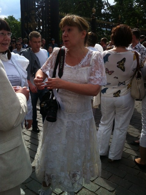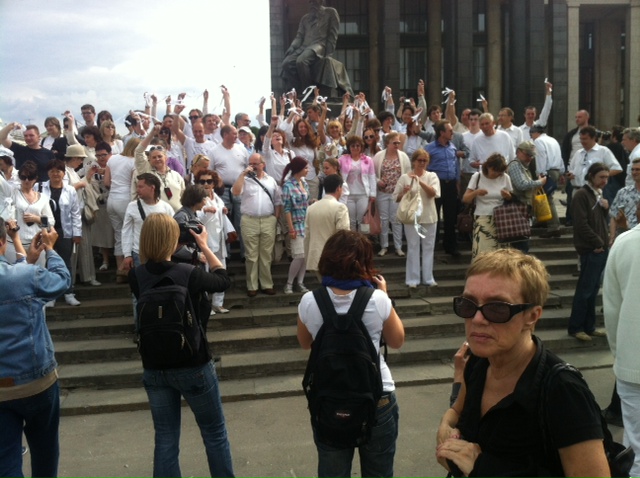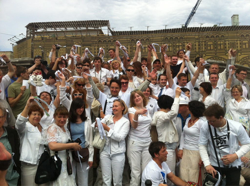 Ее организаторы попросили участников "одеваться в белое", поскольку сразу по ее окончании на Красной площади началось "Белое дефиле". "Мы, красивые, белые и пушистые, пойдем погулять на Красную площадь, надев свои лучшие белые наряды. Белые фраки, свадебные платья, фаты, шлейфы и, конечно, белые ленты — приветствуются особенно! Присоединяйтесь и пригласите всех своих знакомых!" — говорится в анонсе дефиле. Гуляющие с Красной площади переместились на Арбат, где начались задержания.