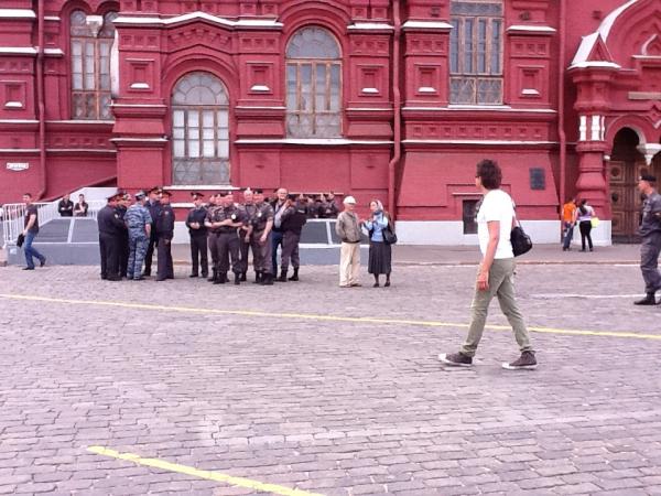 15.56 Штурм: Большая группа людей собралась у Исторического музея, ждем 16:00 и начинаем прогуливаться.