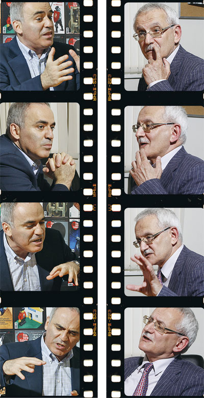 Цена репутации. Вопрос, который вновь встал ребром после обнародования в СМИ объективок на членов Общественной палаты и недавних назначений в правительство и администрацию президента: где тот предел, когда сотрудничество с властью становится для приличного человека невозможным, — об этом в редакции The New Times спорили директор Института экономики транспорта и транспортной политики ВШЭ, член Общественной палаты Михаил Блинкин и политик, 13-й чемпион мира по шахматам Гарри Каспаров