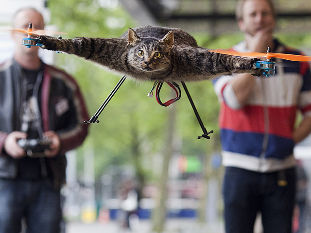 Поначалу после того, как Орвилла, названного так, кстати, в честь знаменитого авиаконструктора и летчика Орвилла Райта, сбила машина, его хозяин Барт Янсен сделал из животного чучело. Но когда прошел траур по погибшему питомцу, мужчина придумал, по его мнению, лучший способ почтить память кота: заручившись поддержкой специалиста по радиоуправляемым вертолетам, он решил сделать уникальную летающую машину.