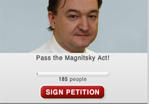 Ассоциация студентов ведущих университетов США "Колледж-100" проводит кампанию за принятие "закона Магнитского" в США и аналогичных законов в других странах. "Сергей Магнитский был российским юристом, которого до смерти замучили в тюрьме за то, что он рассказал о 230 миллионах долларов, украденных у российских граждан, - говорится в петиции, которую предлагается подписать американцам и гражданам других стран. - Преступники, являющиеся группой коррумпированных российских чиновников и уголовников из организованной преступности, так и не были привлечены к ответственности. Этот закон нацелен на недопущение этих преступников на территорию США и европейских стран и на использование ими в этих странах преступно полученных ими средств". "Принятие "закона Магнитского" – это правильное дело, оно в интересах как народа России, так и стран, рассматривающих возможность его принятия", - подчеркивают авторы петиции.