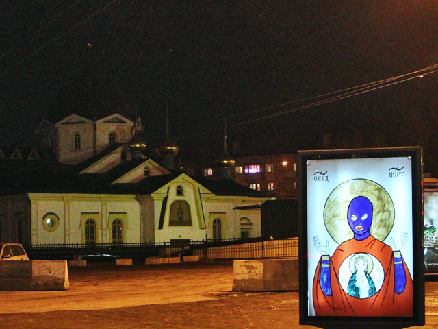 Плакаты в защиту участниц панк-группы Pussy Riot, стилизованные под иконы, 11 марта разместили на трех рекламных стендах в центре Новосибирска, а 14 марта полиция начала проверку по запросу из Новосибирской митрополии РПЦ.