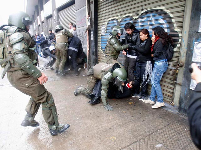 Столкновениями с полицией завершилась многотысячная демонстрация в Сантьяго. Возмущенные чилийцы и родные жертв режима Аугусто Пиночета выступили против показа неоднозначного документального фильма о бывшем диктаторе, они окружили здание театра Caupolican в Сантьяго и скандировали: "Убийца!".