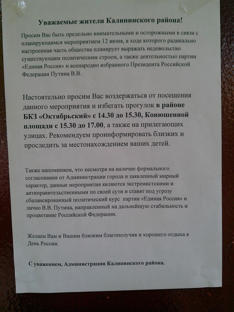 14:19 Александра Суперека, PublicPost, с экстренного заседания оргкомитета акции: Чирикова говорит: "Попова предлагала, чтобы в начале колонны шли девушки, но надо ставить узнаваемые лица". Попова спорит. Будет огромный баннер "Россия без путина" в самом начале марша.