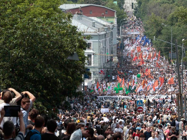 В Москве во вторник прошла самая крупная из намеченных на День России оппозиционных акций - состоялось согласованное шествие от Пушкинской площади до проспекта Академика Сахарова, где затем прошел многотысячный митинг. Официально начало так называемого "Марша миллионов" назначили на 13:00, однако люди начали стекаться к Пушкинской к 11:30, отмечает "Интерфакс".