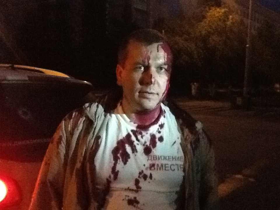 11:39 Движение "Вместе": Евгений Доможиров и Лариса после нападения на их машину группы в масках. Бандиты разбили почти все стекла в машине, стреляли по Евгению и Ларисе. После нападения Евгений и Лариса добрались до офиса ФСБ и дали показания. На марш в Москву они не поехали.