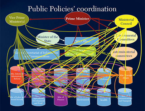 Мое любимое упражнение: начертить схему взаимоподчинения основных министерств, нарисовав между ними стрелки. Схема очень быстро становится похожа на макароны, разобраться в ней практически невозможно: в таком правительстве каждый отвечает за все и никто ни за что не отвечает, а самое главное, при ошибках и спросить не с кого!