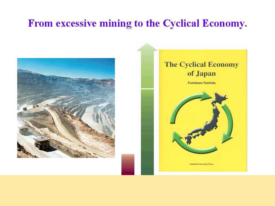 Давайте будем рассматривать города в качестве запасов металлов и других полезных ископаемых. Япония пошла по этому пути, в 2000 году за ними последовал Китай, они перешли к повторной переработке отходов, к их утилизации.