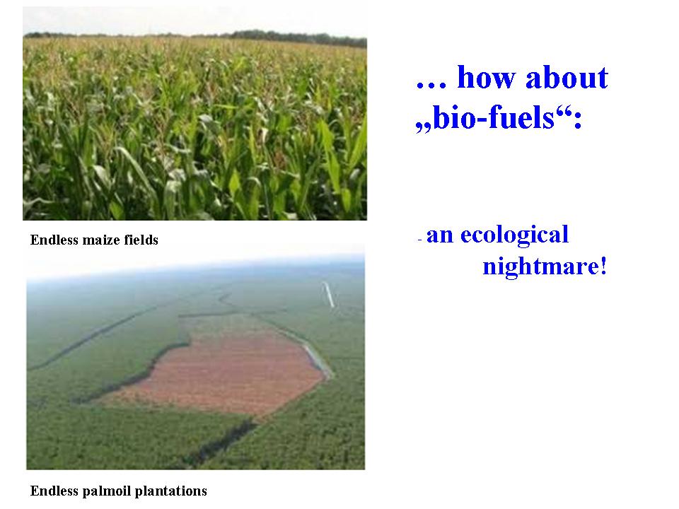 Как насчет биотоплива? В юго-восточной Азии растет производство биотоплива. Также и в Германии целые поля засажены кукурузой. Для окружающей среды это очень тяжелый удар, монокультура приводит к истощению почв. В Германии есть огромные солнечные батареи размером с аэропорт, энергия ветра – прекрасный источник возобновляемой энергии. Мы уменьшили тарифы за плату на произведенную таким образом энергию.