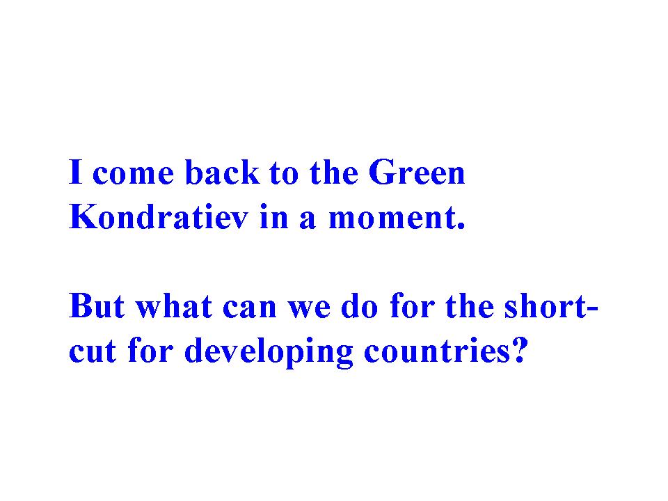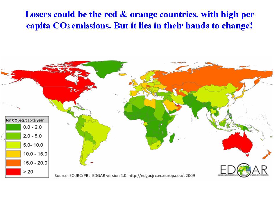 Возможно ли это? Ответ утвердительный. Я скоро вернусь к этому. А сейчас спрошу, как позволить развивающимся странам пройти этот путь? В свое время премьер-министр Индии сказал, что лучшее решение – достижение прав на выброс углерода, которые будут одинаковыми для всех.