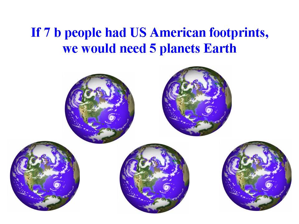 Если мир сегодня неустойчив, через 50 лет все это лопнет, будет катастрофа. Вашим внукам будет очень трудно выживать на Земле. В более богатых районах, в Северной Америке, с тем, чтобы у всех был такой уровень жизни, нам понадобится 5 планет Земля.