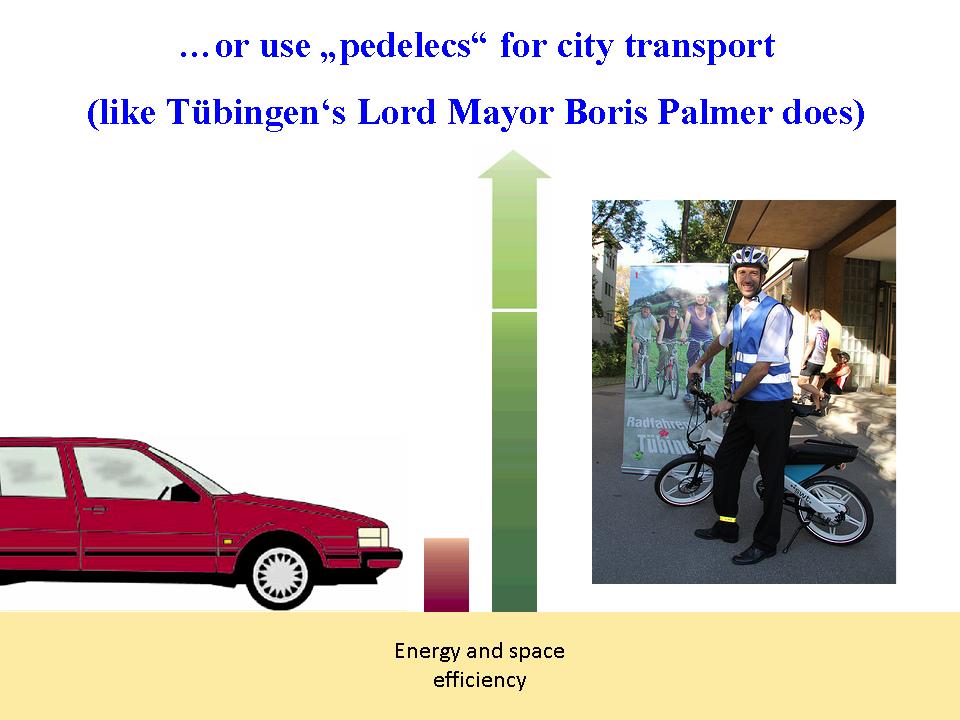 В Германии многие люди ездят на таких велосипедах на работу, по делам. Возьмем дома. Сегодня дома просто пожирают электроэнергию, как динозавры. Подумайте о русской зиме - огромная трата электроэнергии. Почему? Потому что дома несовершенны с технической точки зрения. Они были построены, когда электричество было очень дешевым.