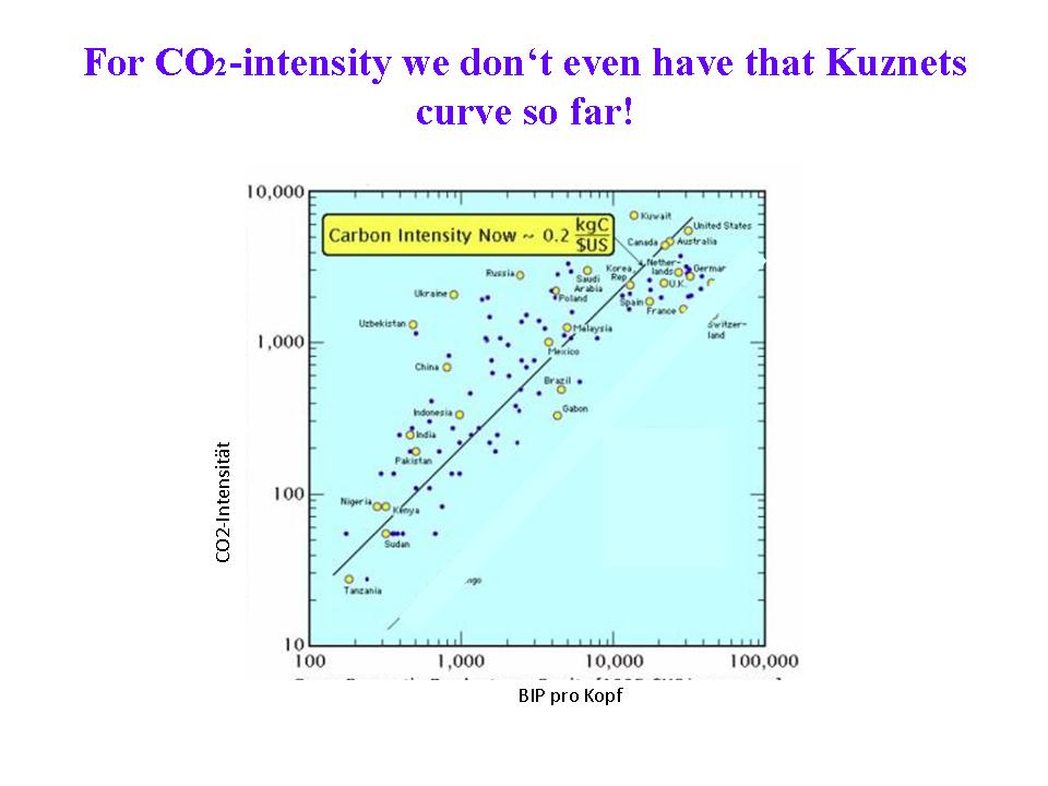 Это очень привлекательные парадигмы, все хотят, чтобы так у них было. Поэтому вы можете встретиться с делегатами из Колумбии, например, которые скажут вам, что им нет дела до климата, потому что они еще не так загрязнили окружающую среду. Предложат подождать еще 10-20 лет, чтобы заняться климатом. Но тогда будет уже слишком поздно. Дела состоят еще хуже. Речь идет о концентрации CO2 – у нас здесь даже не получается кривой Кузнеца.
