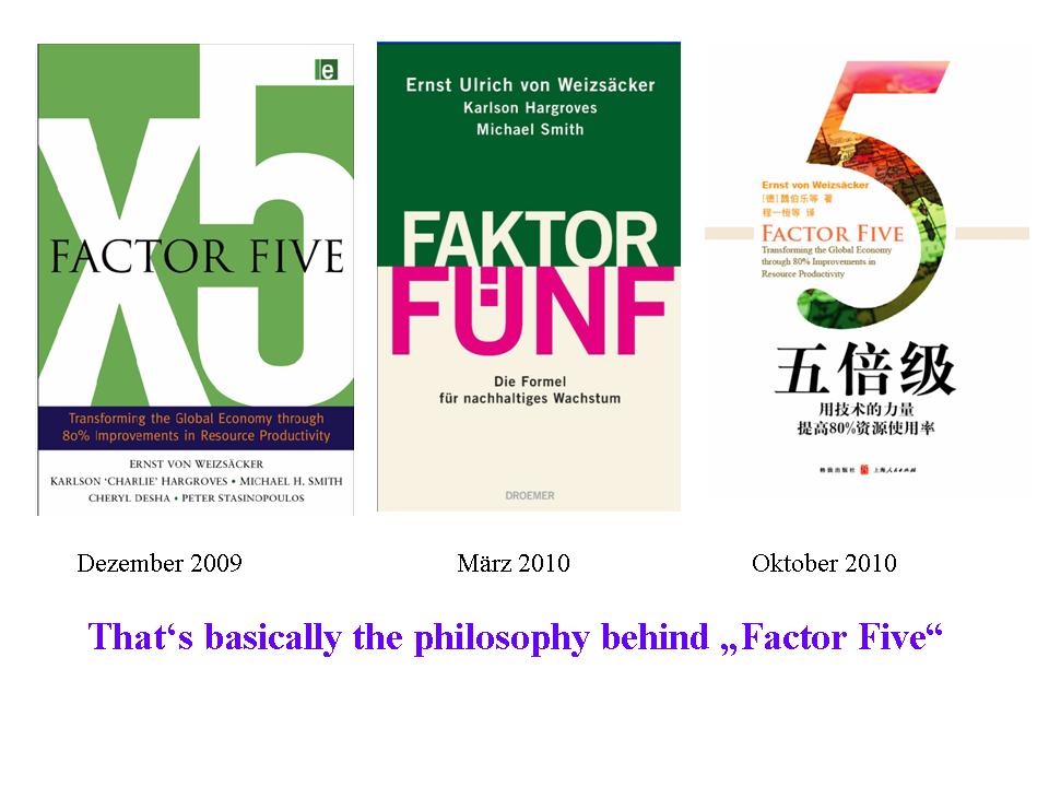«Фактор 5», пятикратное увеличение, - это не безрассудная мечта, а насущная необходимость, если мы хотим обойтись одной планетой Земля, обеспечить счастье для всех.