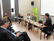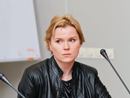 Кто же делает выставку? Тоже по-разному, наряду с институтом Макса Планка у нас в отделе по вопросам коммуникации есть несколько человек, которые имеют соответствующее образование и в течение многих лет уже работают по вопросам популяризации науки и в сферах коммуникации. Так, я, например, для начала стала работать в США в музее, потом была куратором в Немецком музее, а потом перешла в Музей Макса Планка. Я должна сказать, что наши коллеги прошли примерно такой же профессиональный путь – и, таким образом, они знают много разных профессиональных полей, и у нас есть журналисты, которые пишут и производят свой собственный журнал - я его сегодня вам представляла, - и которые заседают в различных организациях и могут таким образом осуществлять свою собственную работу и могут обращаться с этой информацией к общественности, средствам массовой информации.