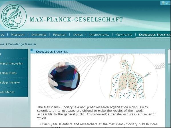 Мы хотим показать, что Общество Макса Планка занимается не только естественными науками, как думают большинство немцев, но и гуманитарными. Для Института Макса Планка это означает возможность представлять себя широкой публике, причем регулярно.Дальнейшая платформа для взаимодействия - лекции в аудиториях, молодые ученые там могут выступать, например, аспиранты могут общаться с учениками и школьниками, проводить дискуссии и science lam – это другая форма infotainmenta. Можно, таким образом, виртуально посещать такие объекты, которые обычно недоступны. Например, реактор в сфере плазменной физики в лаборатории s-4 повышенной безопасности лаборатория.