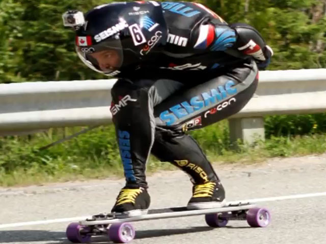 Под пристальным взглядом экспертов из Книги рекордов Гиннеса на одном из спусков шоссе в Квебеке он разогнался до скорости 80,74 миль в час (130 км/ч), побив предыдущее достижение более чем на 10 миль в час.