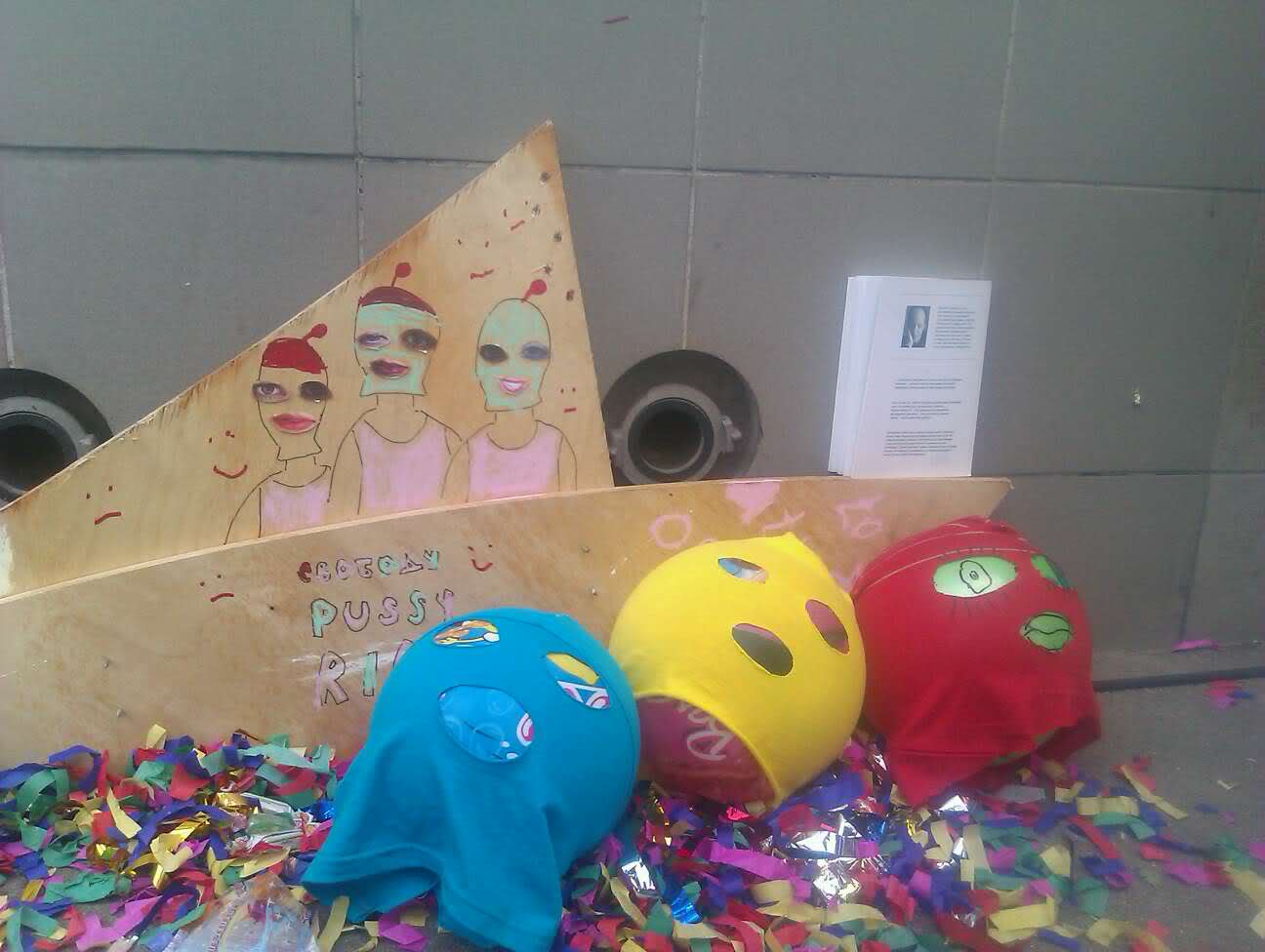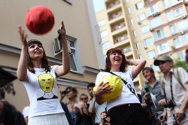 13.30 PublicPost, Екатерина Савина Собравшиеся у суда думают, что девушек из Pussy Riot еще не привезли. Минуты ожидания они проводят за игрой в PussyBall — перекидывают мячи в балаклавах. Правда, опыта у игроков не хватает, и они попадают мячом по головам репортеров.