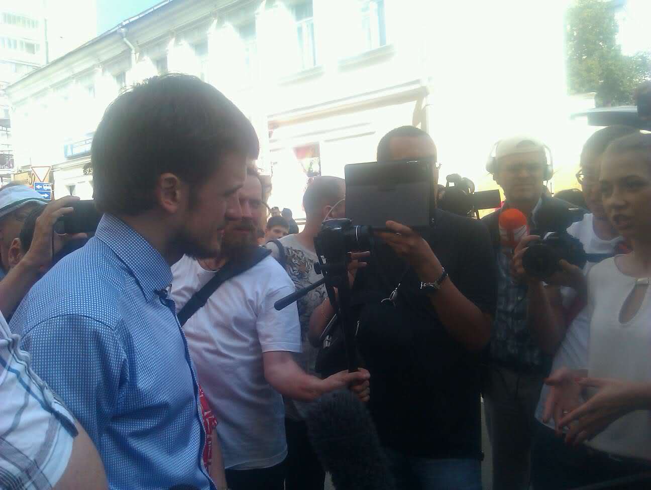 14.00 PublicPost, Екатерина Савина Людей стало чуть меньше, некоторые наклеивают друг другу на спины наклейки "Pussy Riot".