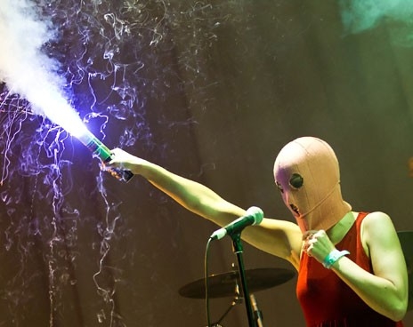 – Как удалось договориться с группой Faith No More? Это была ваша идея или их?– Конечно, это была идея Faith No More! Майк Пэттон, солист группы и величайший в музыкальном мире экспериментатор, и Билли Гоулд, басист и духовный лидер Faith No More, были взбешены тем, что в России можно сесть в тюрьму за исполнение в церкви антиправительственной песни. Приехав в Москву, Майк, Билли и команда связались с нами через друзей и вместе мы решили устроить выступление на эмоциональном пике концерта, в самом конце, перед вторым выходом Faith No More на бис. – Что вы исполняли? Это новая песня? – Это не было песней – но было речью с призывом прийти в Таганский суд, куда 4 июля к полудню конвоируют девушек. Прочитан был поэтический речитатив из нашей известной композиции «Путин зассал», исполненной в январе на Красной площади. Слова оттуда – за исключением небольшой речевки, сказанной в середине. «Наше имя Pussy Riot, и президент Путин зассал, бросив в тюрьму трех наших сестер! Но женщины не сдаются, потому что каждый безумный шаг кремлевских сексистов приближает их конец! Послезавтра, в среду, 4 июля трех девушек будут снова судить в Таганском суде! И мы призываем всех прийти к суду и поддержать плененных Путиным феминисток!»– Сколько вас было?– Мы были впятером, а в конце – вдесятером, потому что к нам присоединились держать баннер музыканты Faith No More в полном составе. На участниках группы были майки Pussy Riot, а музыканты, в том числе солист, великий Майк Пэттон и басист Билли Гоулд, были в ярких балаклавах! Именно в таком виде они исполнили свою последнюю песню «We care a lot».– Какова была реакция зала?– Зал был шокирован. Первые мгновения никто не понял, что происходит, а когда зажегся второй фаер и была произнесена вторая строка «За нашу свободу – хлыстом карать», многие стали кричать «Россия без Путина», «Свободу Pussy Riot» и другие хорошие вещи. Были и недовольные фаны группы – те же, что жестко реагировали на выступление «Чачи» Иванова на разогреве перед Faith No More. И потом, когда после нас выступили FNM в балаклавах, у них просто отвисла челюсть: их любимая группа, оказывается, агрессивно поддерживает Pussy Riot, а они не знали. Майк Пэттон в балаклаве и майке Pussy Riot во время исполнения финального хита «We care a lot» уже вызвал всеобщий восторг и ликование.– Выступление было на сцене и вполне легальным. Не противоречит ли это концепции ваших акций, которые до сих пор были нелегальными, спонтанными и происходили в неожиданных местах, не предназначенных для выступлений?– Ни в коем случае нельзя расценивать вчерашний выпад как полноценное выступление и акцию Pussy Riot, – это было поэтическим призывом прийти на суд. Поэтому на сцене Faith No More были в балаклавах и майках Pussy Riot и вместе с нами держали гигантский черный баннер, на котором было написано «Таганский суд, 4 июля, 12:00». Мы всех активно зовем приходить к суду, и Faith No More попросили сделать это вместе с ними со сцены.– Вас не пытались арестовать? Известно ли вам, как отреагировали на ваше появление хозяева клуба, не было ли проблем у музыкантов?– Арестовать всех нас им, Владимиру Владимировичу Путину, в первую очередь, конечно, очень хочется, но они боятся истерики вокруг арестов, боятся еще одного письма от еще более приближенных к власти людей, которые уже будут не в силах молчать, и боятся еще более ярких и громких жестов в поддержку арестованных девуш